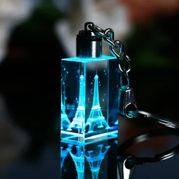JY Best Design Eiffel Tower Key Chain with Led Light 3d Laser Engraving Crystal Glass Key Chain